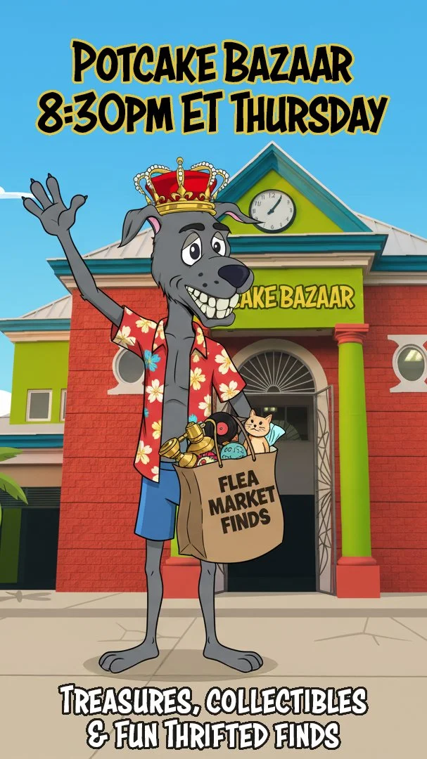 Join us for our very first Potcake Bazaar, a live online shopping event hosted on Whatnot. Think of it like a digital flea market with good vibes, great finds, and an even better cause.